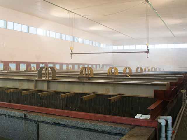實例:塔式生產線:鋅鍋13.5×2.8×3.5(m),8個酸性罐,2個洗滌槽,1個輔助罐,高速天然氣脈沖加熱(6個燃燒器),年生產能力120000噸。